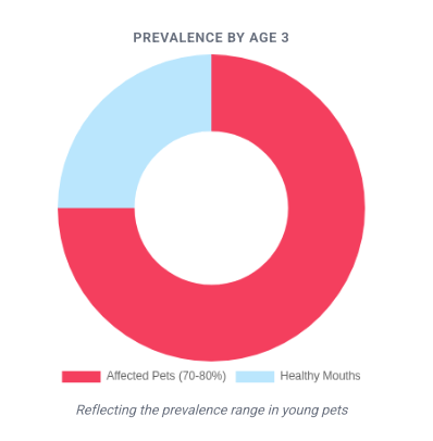 Up to 70-80% of dogs and cats have early evidence of periodontal disease by the time they are just 3 years old.